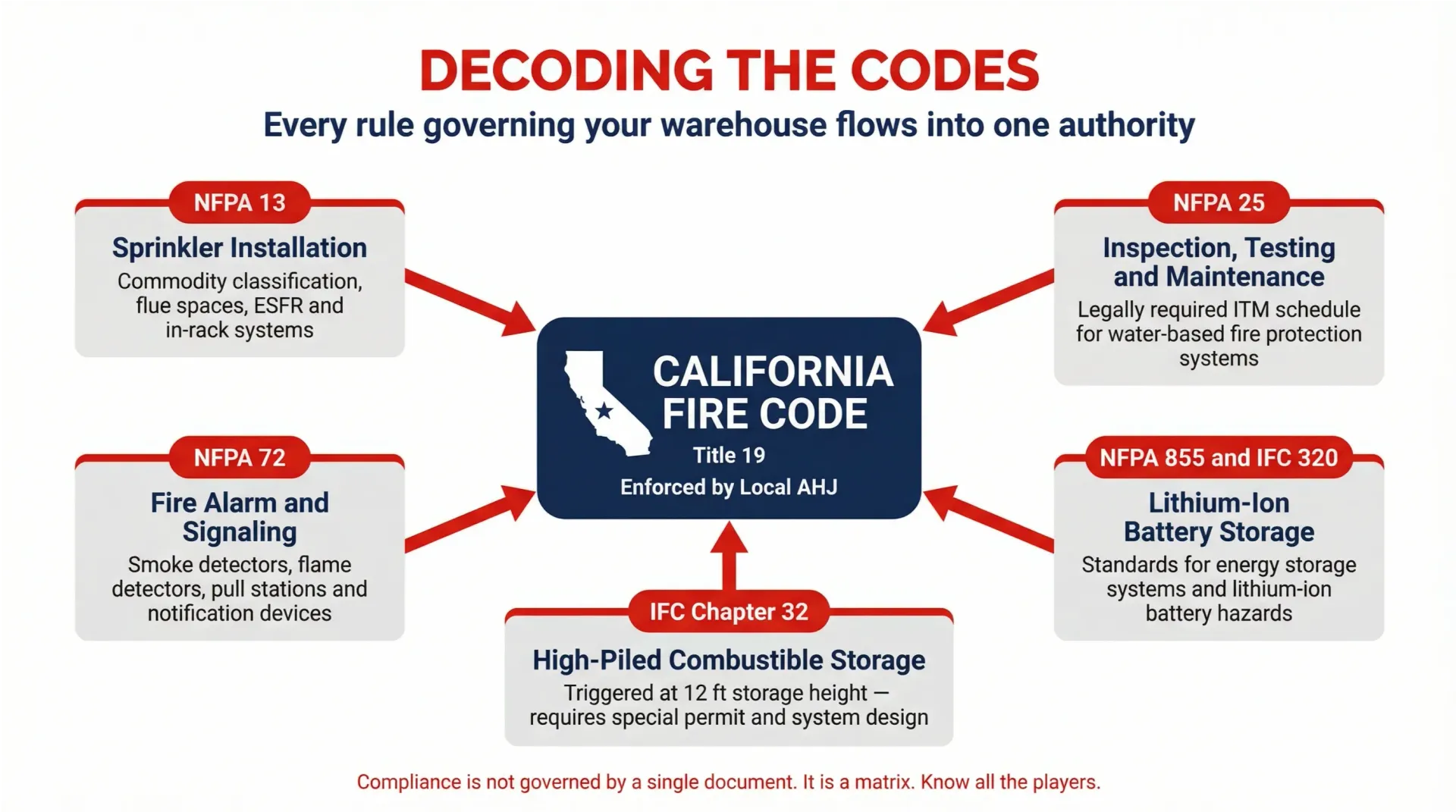 In California, these NFPA standards are adopted into the California Fire Code (CFC) and Title 19 of the California Code of Regulations, making them legally enforceable. Local fire departments, acting as the Authority Having Jurisdiction (AHJ), are responsible for enforcing these codes through regular inspections.
